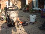 This was made from an old fire-extinguisher, (something poetic there? white hot furnace in a fire- extinguisher!)